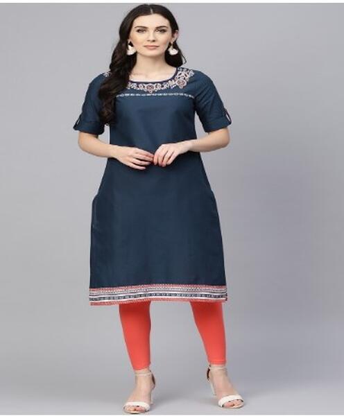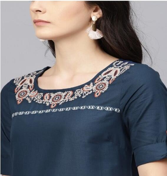 message pritee about this ad Product Code: 8429165 Navy Blue solid straight kurta , has a round neck with embroidered detail, short sleeves, straight hem, side slits The model (height 5'8 is wearing a size S Comfortable and stylish, this kurta from W is ideal for any fashionista. For your next dinner party or family gathering, this navy blue piece pairs well with dark leggings and chic flats. Cotton Hand-wash httpsmyntr.it/wXqp8tm |