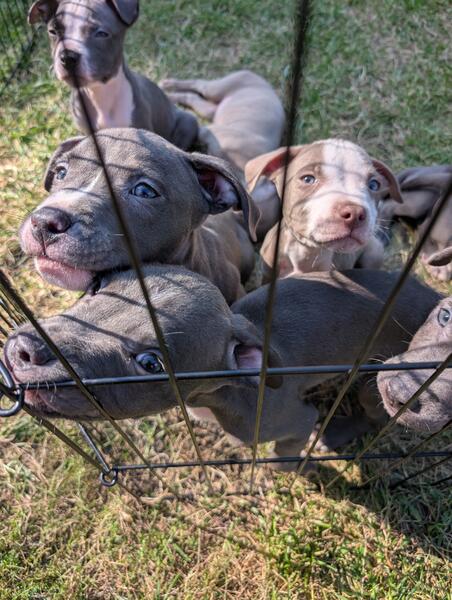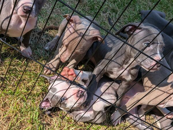 My momma pit had 9 babies. 5 boys 4 girls. Super sweet and cuddly furry babies in need of good loving homes