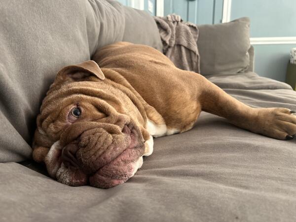 message jaspercole about this ad I have a 1.5 year old English bulldog. He is a blue brindle with white chest and white on muzzle. Fully house trained. Fully crate trained. Fully leash trained. Loves playing with big dogs as well as others. Not sure about cats as he wants to chase them for fun. He listens very well and comes when called. I dont have any complaints other than my 2 yr old grandson does get knocked down by him when he comes to play. We are trying to learn boundaries. He doesnt know how strong he is when playing with little humans. Always a kind boy and never shown a mean bone in his body. He is AKC full from a breeder in the Midwest. He is still intact, has not been neutered yet. We are located in central NC about 40 mins west of Raleigh. All the hard work has been done. He is an A+ furkid that will mold right into your home if youre a good fit for him. I will check messages and emails often. Text 919-352-2274 PS the spot above his eye in the last pic is cleared up. He had scratched his brow area playing with big doggies. message jaspercole about this ad |