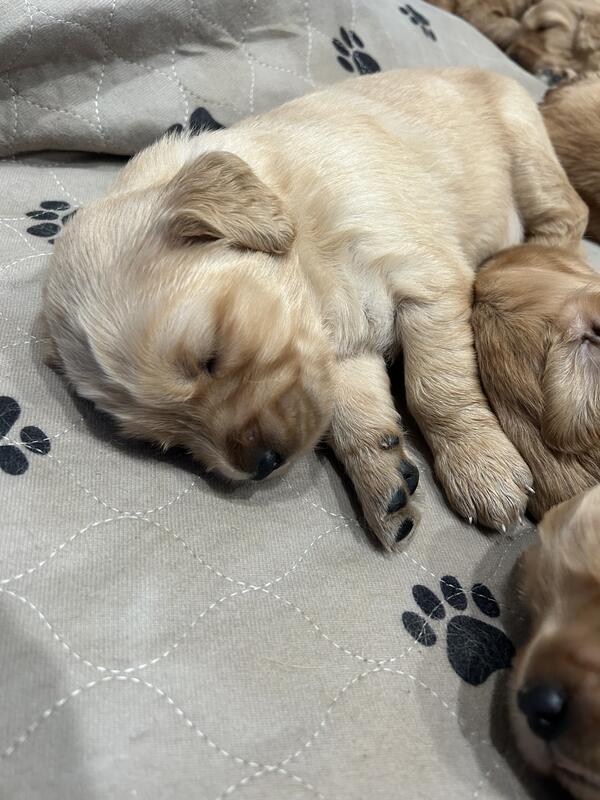 message mizegoldens about this ad Hi everyone Our precious litter was born 11/19/25 to Momma Sailor and Daddy Scout 9 total in the litter, and we have only 1 little girl available. Registered AKC, Pedigree Certified, First Vaccines, Deworming twice, Socialized, Vet Examination, And more! They will be ready to go Jan 11th. |