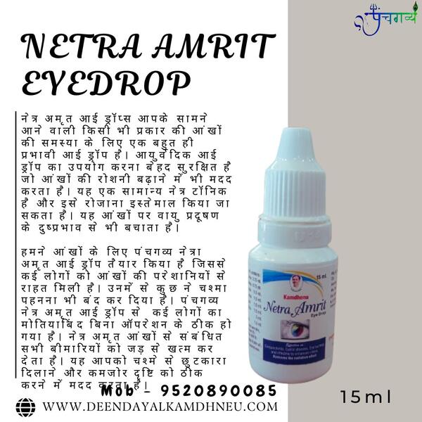 message deendayalkamdhenu about this ad Shop for Panchgavya Netra Amrit, a natural eye care remedy, from our online store. Harness the benefits of cow-based ingredients in this Ayurvedic formulation for maintaining optimal eye health, Order Now for clear and bright vision. For more info contact |
