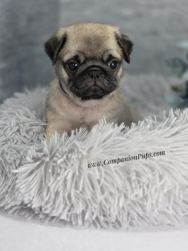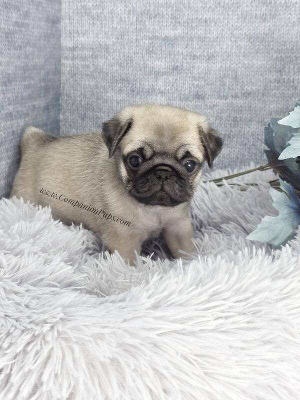 message companionpups about this ad See video: Meet Black Collar, a handsome fawn pug boy with a big personality and an even bigger heart . This sweet, outgoing little guy is full of charm and puppy kisses, always eager to be close to his people. Hes been lovingly raised with our children, making him well-socialized, gentle, and a wonderful match for families of all sizes. Black Collar comes from outstanding champion bloodlines, built through years of experience and carefully selected imported lines to ensure exceptional quality. One thing that truly sets him aparthes expected to be extra wrinkly as an adult, giving him that classic, irresistible pug expression everyone loves. He is vet checked, healthy, and up to date on vaccinations, and has been nurtured with constant love and attention to help him transition smoothly into his forever home. At CompanionPups.com, we raise our puppies the way wed want our ownsurrounded by family, care, and affectionso Black Collar is ready to become a devoted, cuddly companion and cherished fur-member for years to come . message companionpups about this ad |