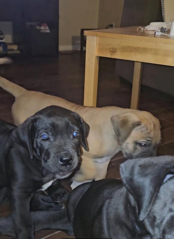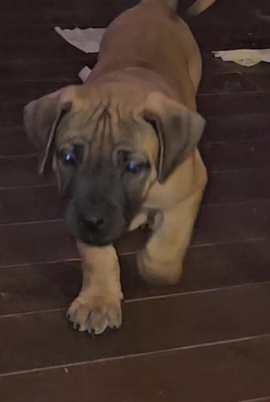 message niagaraboerboels about this ad South African mastiff (Boerboel) pure bred Boerboel 7 weeks old comes Vaccinated. Top pick of the litter is a heavy weight Boy black with white on chest and toes he's the most chill leader of the pack vibe. very dominate playful with kids of all ages potty trained 2200 |