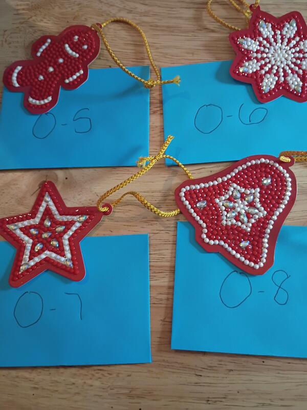 Handmade diamond painting Christmas ornaments. All rolled and sealed. $2ea
