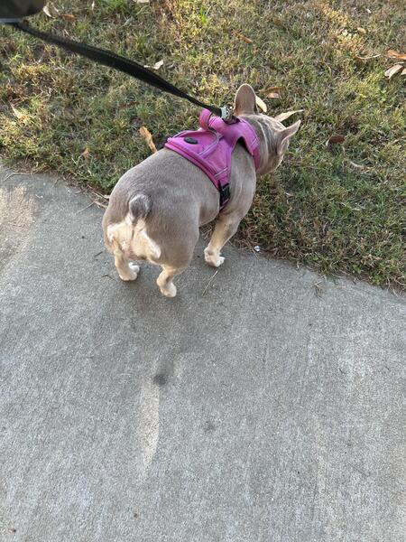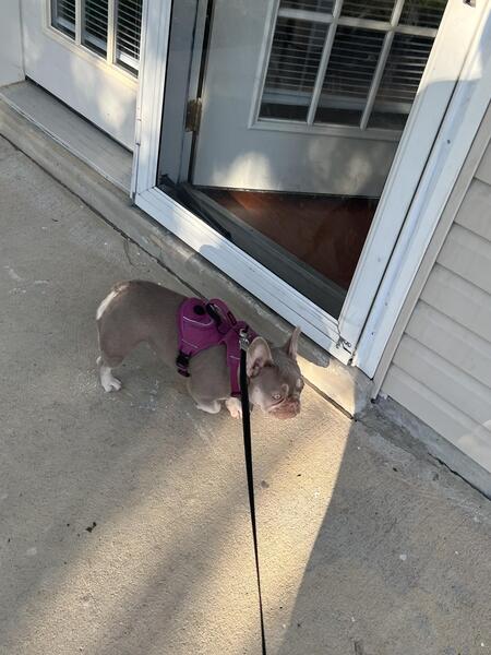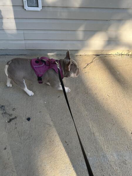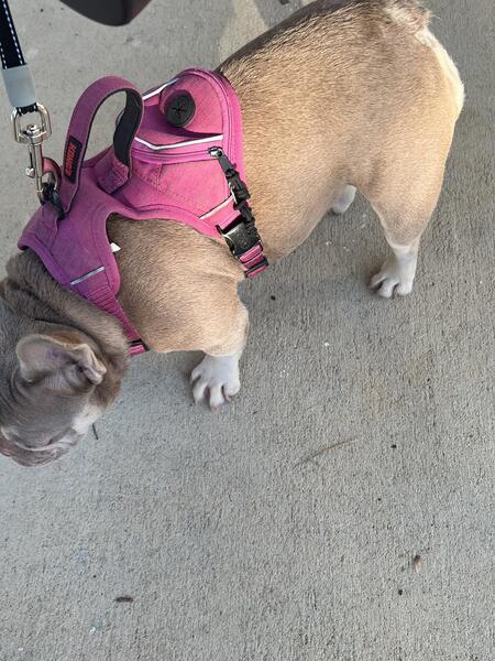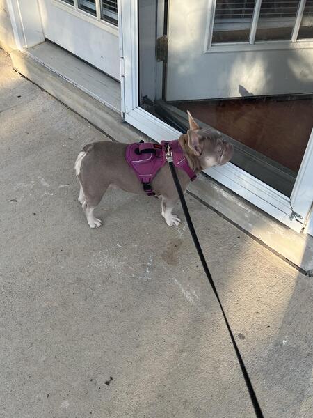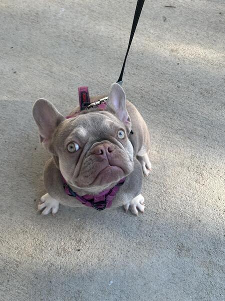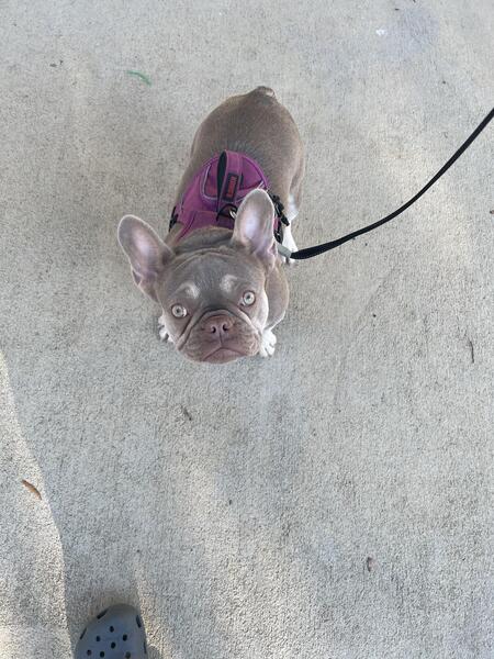 New Shade Isabella French bulldog. Almost one. Had her first heat already. Shes a beast