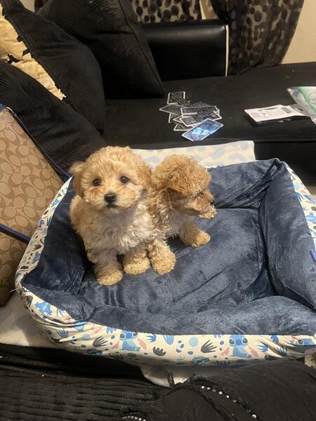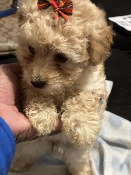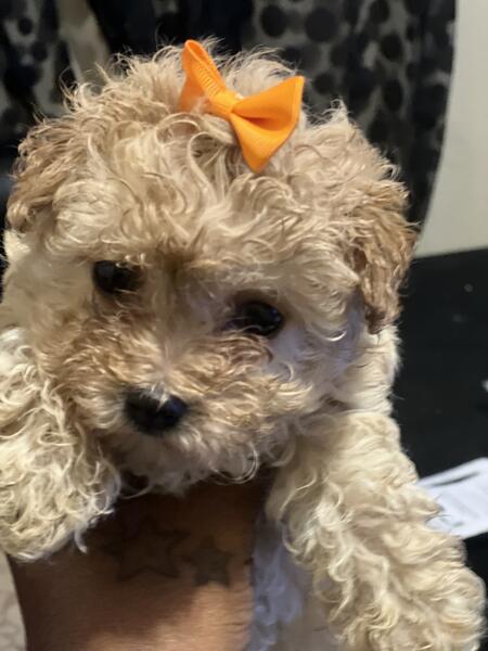 Cute playful Pomeranian mixed poodle puppies girls two 7 weeks old 313-802-7691 text me if your interested