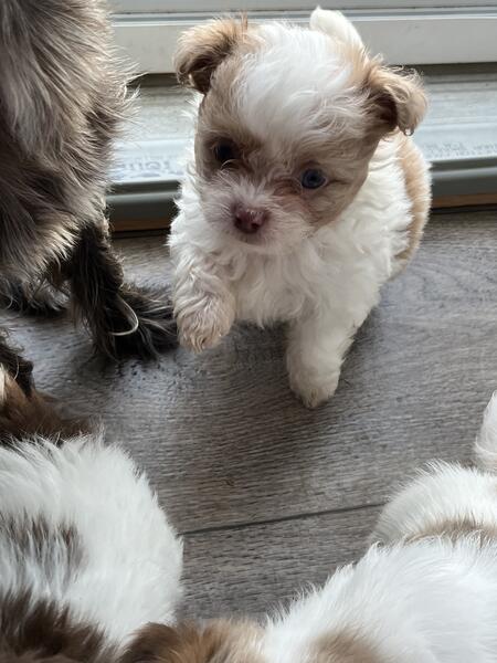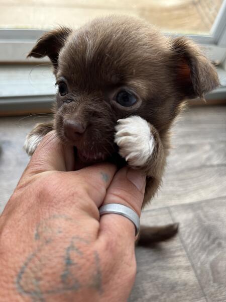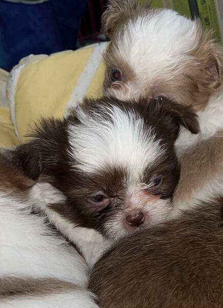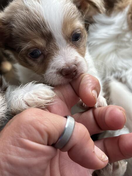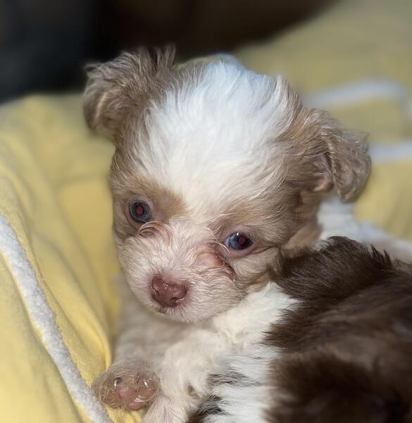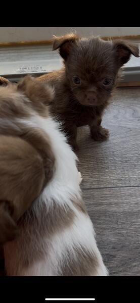 message srhpr4616 about this ad 2 females are the first photos. A chocolate sable and Merle with blue eyes. 4 males are last photos. A tiny apple head chocolate, a white and Merle blue eye boy, lilac Merle and white fuzzy boy and chocolate and white fuzzy boy. Momma and daddy both posted in last pics. Were born 6-25-25. Will be ready August 20th. Been wormed and will be current on puppy shots. Momma is 8 pounds. Daddy is 5.5 pounds. Beautiful babies! If you wish to and are certain on adding one of these babies now, I can accept a small non refundable deposit to hold. Please serious inquiries only. 40769 zip code 606-351-8255 |