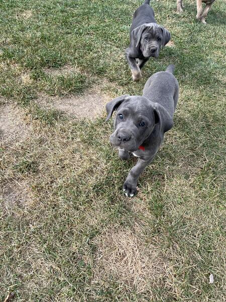 message corsopups7 about this ad 2, 15 week old female Cane Corso puppies. Beautiful gray/blue brindle. Crate trained. Vet checked. Tails docked. 1st and 2nd vaccines. Wormed 3 times. Sweet girls that need a loving home! Located near Virginia Tech |
