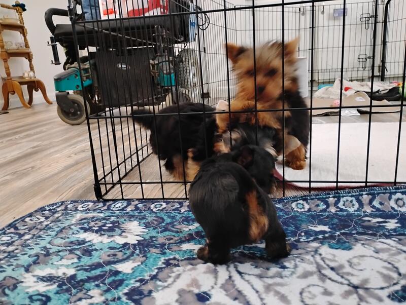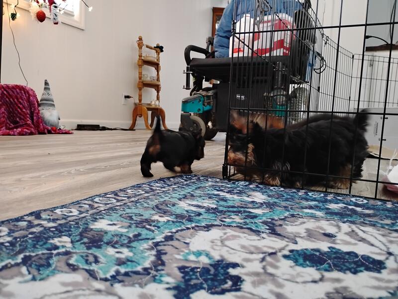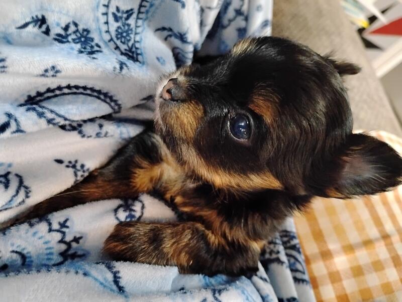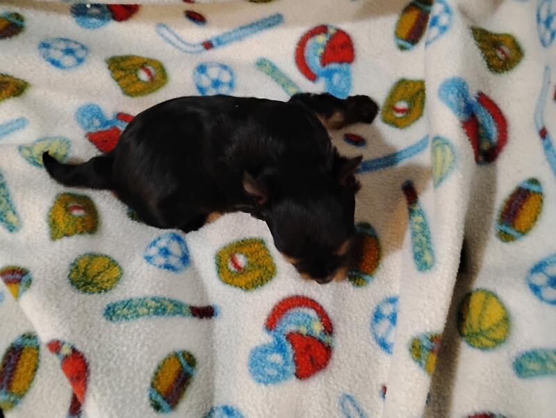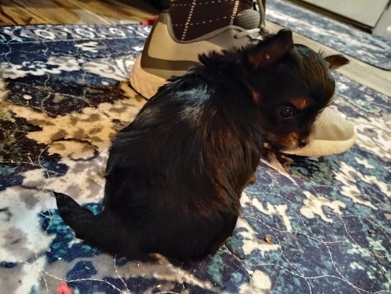 message sharens52 about this ad Female pup born November 28, mom is Yorkie with seven percent Pomeranian in her and weighs five pounds. Dad is a silver grey Yorkie and three pounds. I kept a female from her litter a year ago and she is a year old and only weighs 2.8 pounds. Her tail I left long but her dew claws are done. She will be eight weeks old January 23 and ready for her forever home and will be micro chipped. I'm located in Hillsdale Michigan and you can text me at 517-212-0538 |