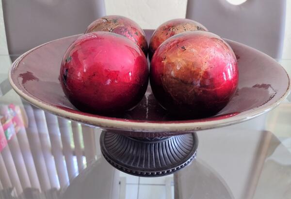 message pigglywiggly64 about this ad If you are looking for an accent piece for your space, this rich red & gold pedestal bowl and urn vase with 4 reddish/gold spheres is the perfect fit. The bowl would work perfectly to hold diced or whole fruit/vegetable on your dining table or counter top, works well as a candy bowl at a birthday party. Use it as an organizer for keys, phone, or just to display some jewelry or keepsakes. The bowl is multi-purpose and can be used to hold some goodies or ornaments or even as dcor accents. These stunning decorative spheres are perfect for any room and bring a sense of art and style to your space. Made from high-quality glass material, these decorative spheres are durable and long-lasting. The striking combination of gold, red, and marble colors adds a distinctive look, making them a great addition to any home dcor collection. All in Excellent Condition! Bowl Measures: 14W x 6"H. Call or Text 786-589-9477 for more information! Si est buscando una pieza decorativa para su espacio, este rico cuenco con pedestal rojo y dorado y jarrn urna con 4 esferas rojizas/doradas es la opcin perfecta. El tazn funcionara perfectamente para contener frutas/verduras enteras o cortadas en cubitos en su mesa de comedor o encimera, funciona bien como un tazn de dulces en una fiesta de cumpleaos. selo como organizador para llaves, telfono o simplemente para exhibir algunas joyas o recuerdos. El cuenco es multiusos y se puede utilizar para guardar algunas golosinas o adornos o incluso como acentos decorativos. Estas impresionantes esferas decorativas son perfectas para cualquier habitacin y aportan una sensacin de arte y estilo a tu espacio. Fabricadas con material de vidrio de alta calidad, estas esferas decorativas son duraderas y duraderas. La sorprendente combinacin de colores dorado, rojo y mrmol aade un aspecto distintivo, lo que los convierte en una excelente adicin a cualquier coleccin de decoracin del hogar. Todo en Excelentes Condiciones! Medidas del tazn: 14W x 6"H. message pigglywiggly64 about this ad |
