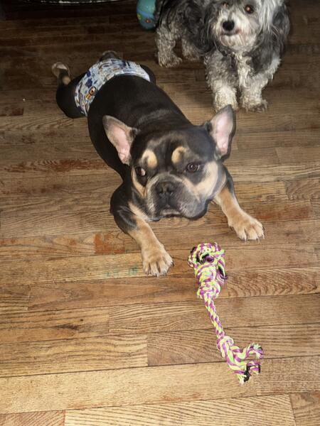message frnch5505 about this ad I have a 2 year old tri color male French bulldog looking for a new home. His name is Rip. He is not fixed, a proven breeder and AKC registered. He does come with breeding rights as well. He is up to date on most shots but will need his rabies updated. He is house and crate trained and he is used to having a fenced in yard to run in. He has the normal frenchie spunkiness and loves to run and play. He gets along well with other dogs, loves kids and doesn't bother my cats any. He has not been leashes trained so I do not know how he will do if put on a leash but he has 0 issues wearing a harness. Or willing to trade for a pair of REGISTERED Boston terriers. Either a female and male OR two females. If you have any other questions text or email me. 6 O six three 0 four five four 5 8 Thank you! |