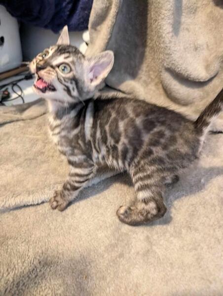 message feathersglenfarm about this ad Hand raised, tica registered female Bengal. Gorgeous rosettes and a killer personality. Seeks out attention and is always purring. Loves to play with her humans and gives tons of kisses. That doesnt take away from the traditional Bengal temperament tho. She is very active, loves to play and explore, and can be vocal. She is not shy in new situations and is always the first to run and check it out. She will come fully vaccinated, spayed, microchipped, with a NH health certificate and her registration. Email or text at 508-843-2678 |
