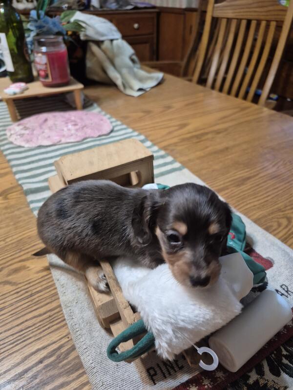 message ngywrsk0693 about this ad Holly is 6 weeks old. She is a Longhair Dapple Dachshund female. She loves to play and cuddle. She will make a great long time companion. She will be ready December 9th, 2025. Feel Free to text me at 440-336-4938. |