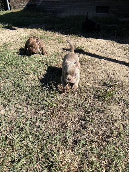 message wnbbyzus about this ad I have exotic micro bullies that are 3 months old and ready for new homes They are compact & thick. They look 100 times better in person They will stay small. Parents are Frenchie size but swole. They have their first puppy shot and ABR registration papers. Ears have been cropped & are healed. Call or text 910.806.538o Black male available (full tail) $1200 Lilac female w/ white paws available $1200 Lilac female available (full tail) $2000 Lilac male available $2000 They carry both forms of chocolate plus blue, & tri |