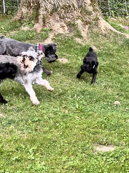 message minis2025 about this ad Update 1 black male, 1 black female left as of July 23,2025 Family raised Miniature Schnauzer Puppies for sale. Born on Easter Day and ready for their forever homes. Our dogs are like our children and part of our family. Pups will be sold to good homes only ,questions may be asked when inquiring. We have a litter of six pups, 3 females and 3 males. Mother is a black mega coat. She is duel registered AKC and CKC. Father is pure white ,wire coat CKC registered. All Puppies will come pre-register with CKC. Puppies are all micro- chipped. Puppies tails and claws were done at 2 days of age. They were started on a preventative worming schedule at two weeks of age. At eight weeks they were health checked and vaccinated. We also started them on flea and tick prevention and heartworm prevention protocol. Puppies will continue to see the vet for up-to-date vaccines and health checks until they are sold. A little about our dogs.They are very smart family loving dogs. They love fishing on our pontoon boat, going camping, side by side and Is four wheeler rides. They love hikes and walks in the woods. Love being in the garden and going for rides. They are great dogs and love to do whatever youre doing.Plus they love to cuddle on the couch whenever they can. Ours also sleep in bed with us. They are very easy to train and these pups are at least 3/4 trained already. They have been going outside to go potty and play time since they were 4-5 weeks old over 5 times a day. These puppies are very special and they were raised exactly the way they should be. If your family is truly interested in one of our beautiful smart puppies and you think youre home is a good fit for a pup. Please dont hesitate to set up a time to come meet them in our home. We can also do video chats if you would like to meet them before deciding to make a long trip. We only want the best for these babies. They only deserve the best. We are not looking for deposits if you would be coming within a few days. We will just take your word and hold the Puppy until you got here. We know theres a lot of scammers out there and its scary. So we want to make this experience for you exciting . We can also share contact information from other buyers to speak to them about their experience, buying a puppy from us. We just want the best for these puppies. Also I am sure our vet would give a great reference. We look forward to talking and meeting families that are interested. Price females $1500 reduced $1200 Males $1200 reduced $1000 Please feel free to make an offer Thank you for looking, Chantel Gonyer and Family Please call or text 802-673-3562 message minis2025 about this ad |