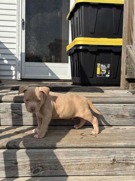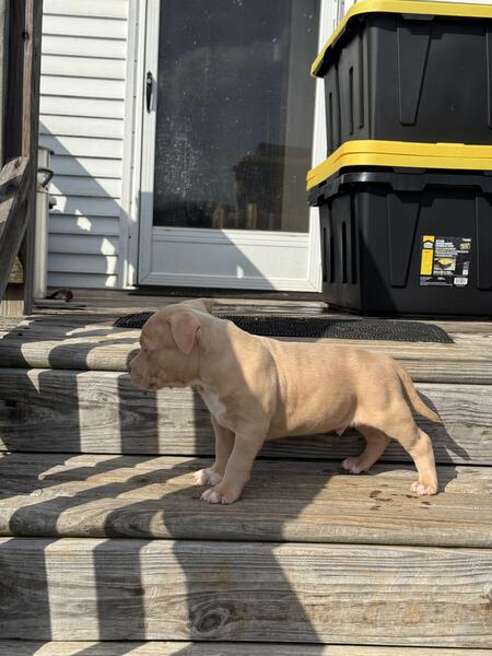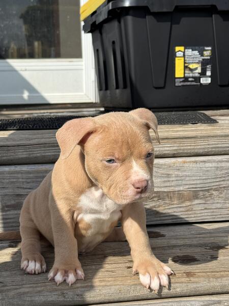 message jayboy8227 about this ad Bully puppies ABKC registered for sale 2 males 4 females colors vary from champagne/white with merle spots to sable/white with merle spots. 1st shots and dewormed papers in hand, ear cropping available at additional cost.Prices range from $1500 - $2200 serious inquiries only 803-983-9557 |