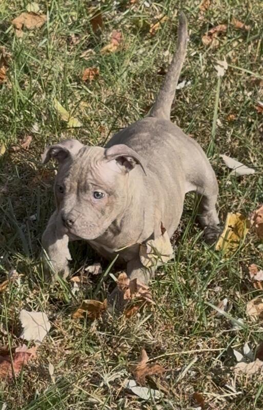 message nespence4 about this ad Brolic is an awesome blue male pup who was born August 26, 2025. Brolic is off of DNKS GOLIATH DNKS ELSA! Elsa is a smut tri American Bully and Goliath is a blue American Bully with some mastiff and American bulldog. Pup will be ABR registered as Hybrid Bull and is ready for his new home. Contact me for early inquiries. |
