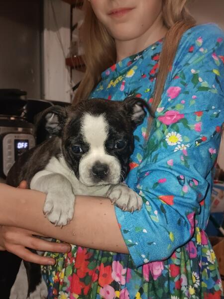 message ezirkara about this ad Beautiful, friendly puppies born 1/18/25 ready for their forever homes in two weeks. Four males, one female. Home-raised- these pups live in a big pen in our living room that they love to escape from to lick our toes and play. They are used to dogs, cats, and kids. Healthy puppies- these pups are up to date on de-worming and vaccinations and we send a health record home with them including the dates and recommended boosters. Puppies (in order 1. Sqooshers- male. This pup has made an impression from the beginning. The first to sqoosh around the whelping box, the first to open his eyes, the first to run, the first to jump, and the first to escape the puppy pen. He has an outsize personality and his antics will keep you entertained forever. 2. Munchers- female. Always the biggest of the pups, Munchers loves to play and cuddle and sit on other puppies. 3. Oreo- male. A sweetheart who started out shy and just wanting to cuddle, but who has recently discovered the fun of wrestling with his brothers, sister, mom, and other pets. 4. Shyling- male. He started out kind of shy, but now he loves to play tag with our kids, chasing them and then being chased. Hes adorably obsessed with string right now, and will roll around and wrestle with string before curling up in a lap for a good cuddle session. 5. Brownie- male. A bit on the wild side, Brownie loves to wrestle with his brothers and sister and race around the house. These pups are all friendly, cute, and active. They line up on the side of their pen and whine for attention whenever anyone gets too close, and they are all puppy smiles and licks when petted. message ezirkara about this ad |