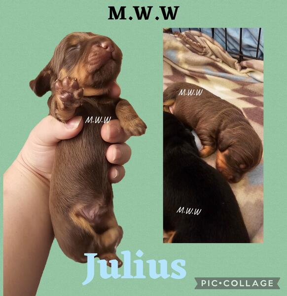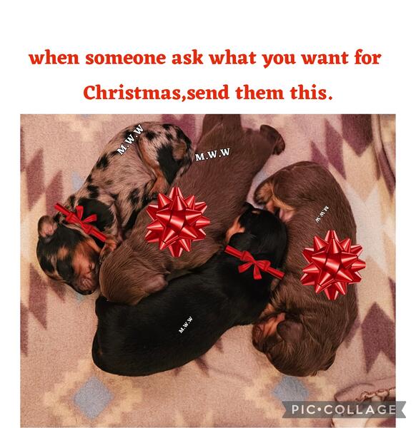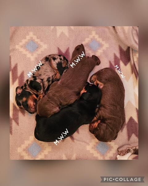 message tessa95 about this ad 3 little boys searching for there families Black an tan dapple $2,500 Black an tan $1,800 Chocolate an tan $1800 We do have pet prices available as well. Comes with first shots/wormings Puppy go home bag Akc papers(limited,pet price) Life time support from me (Tessa Mineer) Seen by a vet |