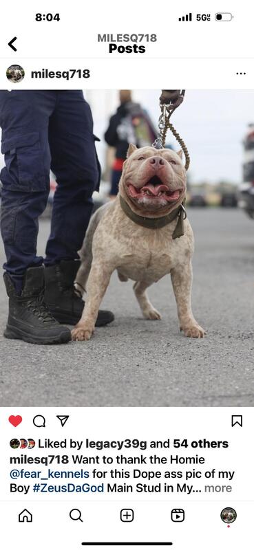 message miles718 about this ad Zeus Da God is A full suit lilac ticking American Bully Registered with ABKC he is Standard sSize and always produces himself . Have allot of his work to prove you can call or text me at 3474234853 my name is Q and thats My Dog Thanks in Advance. |