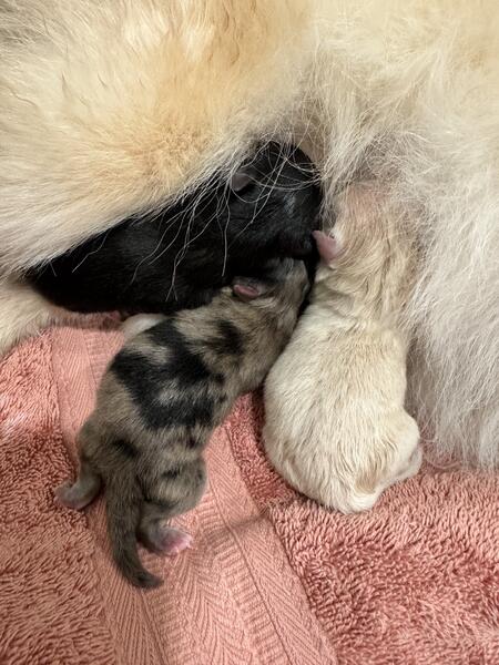 message lopezmaggie1023 about this ad We have 3 Pomeranian puppies that will be available Aug/Oct Black is MALE White is MALE Merle is FEMALE |