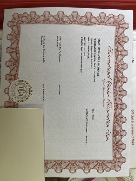 message hp2013 about this ad Apricot and White Parti 3 1/2 years old, female One litter of puppies. Wonderful mother Multiple Obedience classes AKC CGC (Canine Good Citizen) (She is not registered AKC) Registered International Canine Association Inc Very loving dog FYI: Does not like anything feathered. Will kill any bird whether large or small if she can get a hold of it. She is UTD on all vaccinations $1500 ICA $1000 no papers |