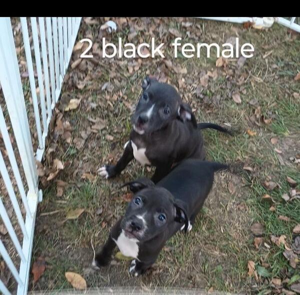 message tony2game2elipit about this ad 2 female black pups very active adba register pick up only Eli breed puppies 8 weeks ready to go papers in hand text only (317)717-4949 I can send pedigree and more pictures |