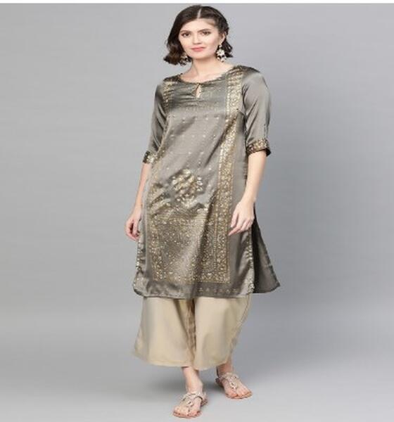 message rohinee about this ad Product Code: 10206811 Charcoal grey and golden satin finish printed straight kurta, has a keyhole neck, three-quarter sleeves, straight hem, and side slits The model (height 5'8 is wearing a size S Make a statement with this elegant kurta from W. Look chic for the day with this charcoal kurta and leggings. Material: Polyester Hand Wash httpsmyntr.it/naqt4FU |