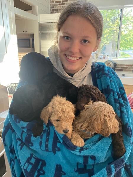 message evandenberg about this ad Just 8 weeks old. First shots and dewormer. Ready to go! Two males and one female available. Chocolate and tan male, tan female. Super fun, laid back personality. In home with lots of kids, very socialized. Around lots of noise, played with and bathed often. Tri color bernedoodle mom, medium size (42 pounds classic medium size tan golden doodle dad (25 pounds Puppies should be somewhere in between. Super fun puppies. For some reason the other pictures didn't want to save on the listing. Happy to share more pictures of these adorable puppies! West Michigan |