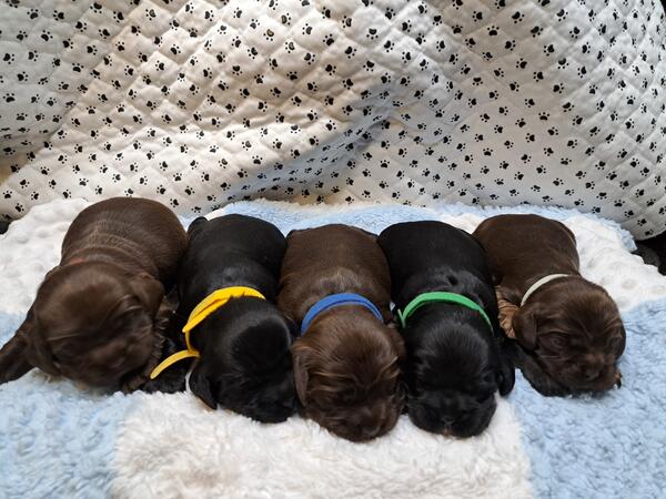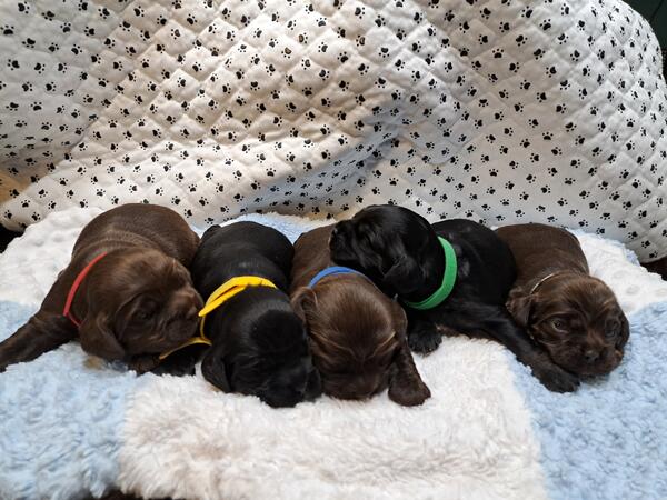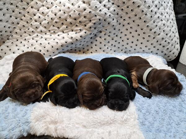 message jenniferlee123 about this ad CKC American Cocker Spaniel Puppies. Born March 3rd, CKC paperwork, tails docked, dew claws removed. They will have their first set of shots and a vet check up before leaving for their new homes starting April 17. 1 male solid chocolate, 1 male chocolate with a white spot on chest, 2 males black with white spot on chest, and 1 female chocolate and tan I do meet for deliveries up to 2 hours away. Located in McCall Creek, MS A delivery fee if over 2 hours from my home. I deliver to most of Mississippi and most of Louisiana without a fee. (Examples-MS gulf coast, Hattiesburg, Laurel, Vicksburg, Natchez, Jackson, Pearl, Flowood, etc In Louisiana -Hammond, New Orleans, Baton Rouge, Covington, etc) If in other states delivery fee will apply. Call/Text 601-320-5963 $200 Deposits are required and the rest paid at pick up. $1000 each. |