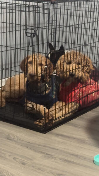 message kacb0614 about this ad Hello all, I have two golden doodle brothers that are bonded. They were born Thanksgiving day in 2023! Ranger & Trooper will be 2 this year. I initially was fostering for a friend until her home life settled when she was relocating and she wasnt able to take them back. UTD on rabies. We are unable to keep them any longer due to our work schedule and childrens school schedule. They are crate trained, house broken, they get along well with other dogs. Unsure of cats. Great with kids. |