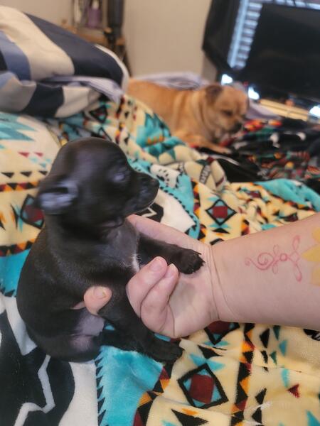 message shant2024 about this ad I have 2 more Chihuahua pups, looking for there forever home. All black, with minimal white markings. One female- biggest of the litter. At a little over 3 pounds. & 1 male- weighing over 2 pounds. Mother weighs in At 10, father father weighs in At 5. Born July 20th, ready September 20th. All have been vetted, first set of shots, & dewormer heartworm prevention. With vet records. Will be going home with, collar, blanket, leash, food, and the dewormer prevention. Fantastic temperament, friendly, outgoing & highly affectionate. Impressing the veterinarian staff. |