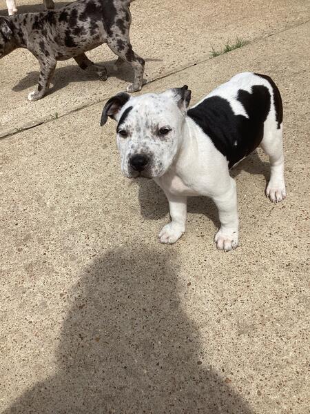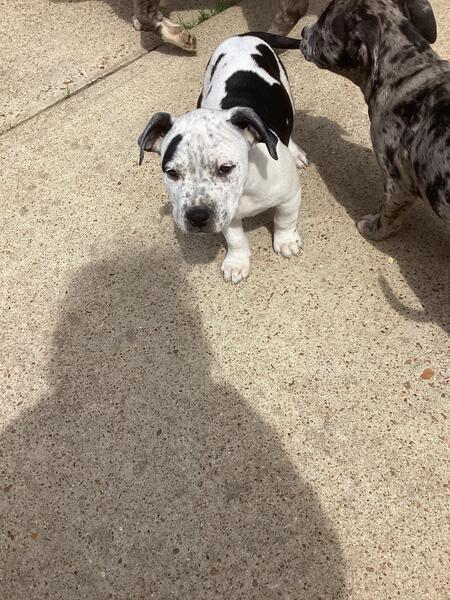 message bigd89 about this ad Name: (Your Choice Birthdate: 1.4.2025 Breed: American Bully Mom: Standard Tri Bully Dad: XL Merle Bully Hi there! Im a handsome, well-built American Bully with a sleek white coat and bold black patches. I have a strong, proportioned build that reflects my top-tier lineage, coming from a Standard Bully mom and an XL Merle dad. Im a playful, affectionate pup who loves to explore and be close to my people. My muscular yet compact frame gives me strength, while my loyal and loving nature makes me the perfect family companion. Whether were running around or relaxing at home, Ill always be right by your side. Here are a few details: Price: $500 (priced low because they are not registered) Parents: Standard Tri Bully mom & XL Merle dad both family-friendly with great temperaments Training: Kennel trained & well-socialized Health: Dewormed & has received age-appropriate vaccinations Pickup/Shipping: Local buyers I can meet at a designated pickup spot. Shipping I do not handle shipping, but I can take the puppy to a designated drop-off location of your choice once you arrange transportation. Lets make memories together! message bigd89 about this ad |