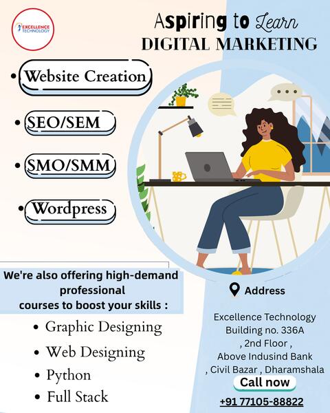 message excellence04 about this ad Join Dharamshalas most practical digital marketing course by Excellence Technology .Learn SEO, Google Ads, Social Media, Email Marketing, and morethrough real projects and expert trainers. Get certified and job-ready with 100% placement support. |
