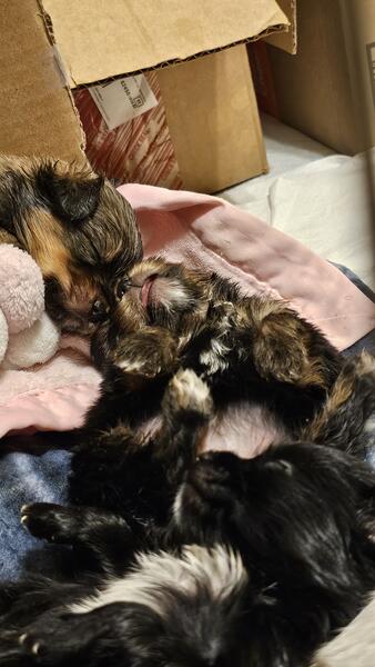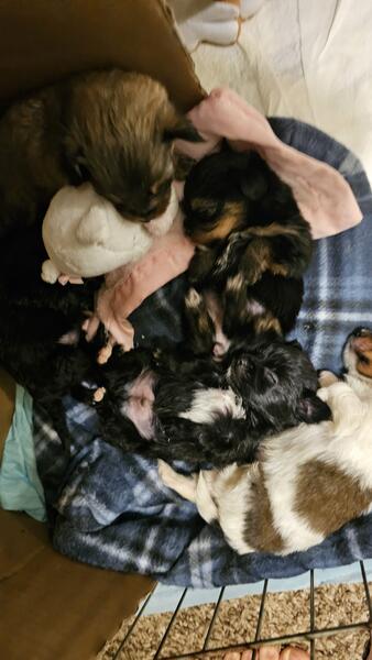 message mchlrl7664 about this ad Adorable Shorkie-Poos, males and females ready soon! One of our last litters! Cute as a button, playful, and looking for loving furever families! Hypoallergenic! Ready for new families soon! Colors: Black and brown (Nutmeg a cow (Moo-fasa brown with a darker brown face (Hershey and two mostly black and whites (Tink and Pips) |