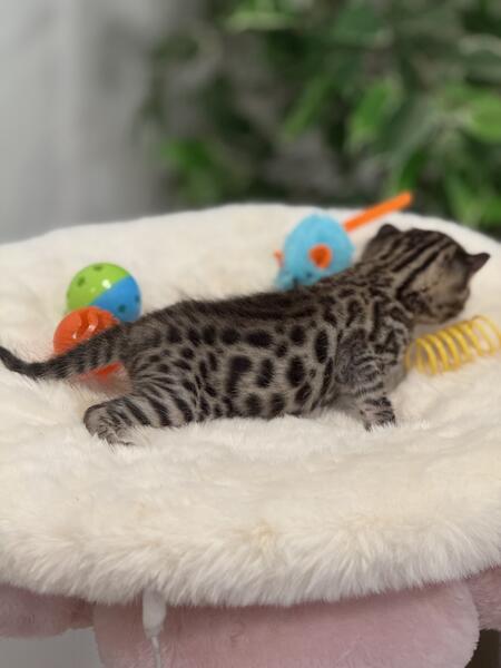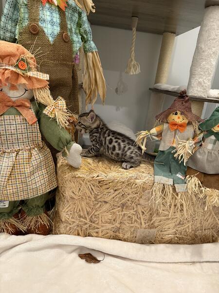 message dttshc7192 about this ad Brown spotted/rosetted female Bengal kitten born 10/12/24. TICA registered. Comes with a health guarantee. Will be spayed, microchipped and have 2 rounds of vaccinations before leaving. Wellness exam will be completed by a veterinarian. Will be ready for her forever home at 12 weeks old, starting January 4, 2025. Located in West Terre Haute, IN. |