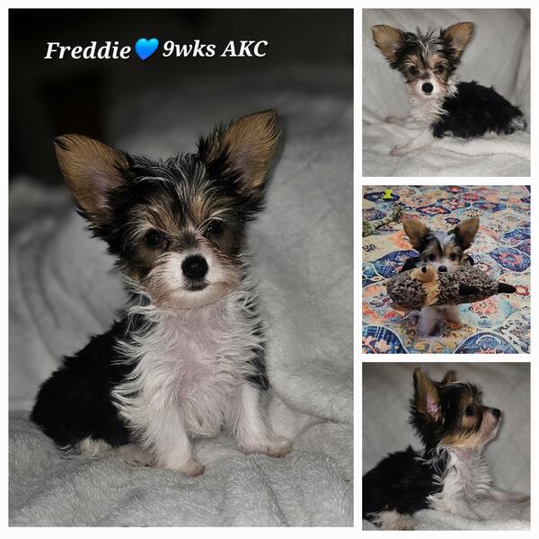message raven281 about this ad I have 2 male puppies available for adoption today. They are playful, loving, and sweet. Freddy is calm and tiny at 4.5lbs, while Eric, the runt turned largest, is more rambunctious but very affectionate. Boys make great pets, and these two are my favorite. They are AKC registered, priced at $1600 for pet registration and $2500 for full registration. Tails and dewclaws are docked, potty training has started, and they have received all necessary vet care. I am willing to travel to several states to meet potential owners. |