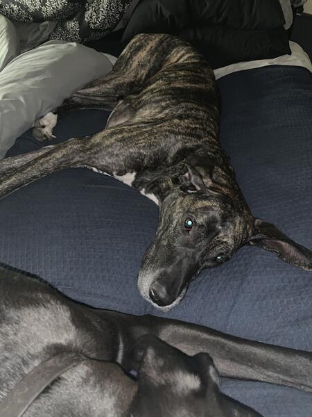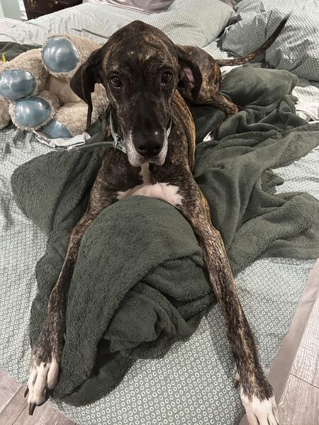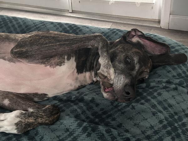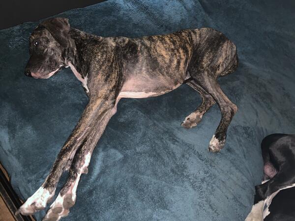 message cutterscigar about this ad Hazel is a spade 6 year old Great Dane of medium size. Unfortunately, due to injuries and surgeries I am unable to walk her on a leash. We have moved to a property where it is not possible to fence at this time and it is unfair that she is used to running around the yard happily and now is not able to nor can I walk her on the leash. She is a very shy dog, and although extremely loving within the family unit she is very skittish around anyone she doesnt know. It will need someone with patience and experience to get her to trust them. She is very protective and does bark at unknown persons. She doesnt have any known health issues and Ive had her on an excellent diet her whole life. She loves sleeping on the bed- her favorite place. I dont know how she would react in a home with other dogs as the dogs shes been around is all she has ever known- they were not introduced as adults. |