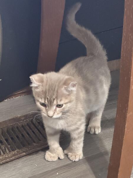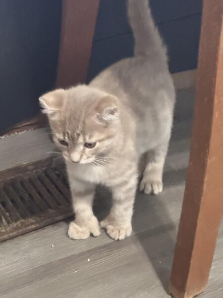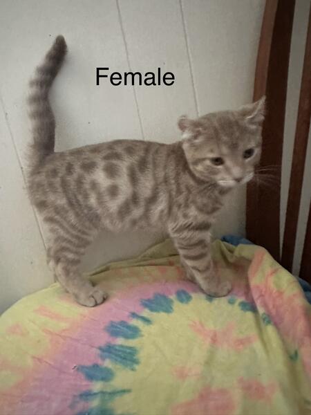 message dobies about this ad TICA reg. Highlander kitty 6 months old old female has curly ears,long tail,poly paws. Has wonderful personality very sweet will come prespoiled. Her color is cream and fawn. Will also have shots and dewormed. She is already litter box trained. |
