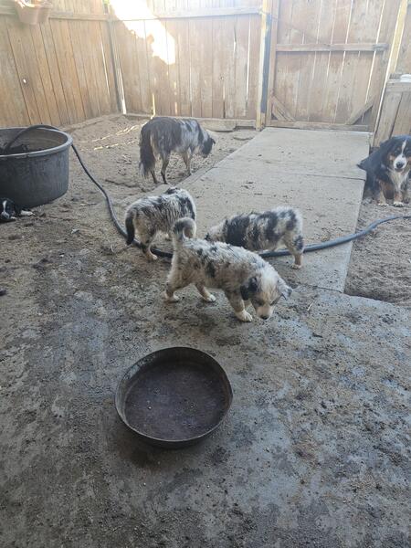 message scoobydoo1 about this ad 6 two month old puppies available 2 females, 4 males. Father is full Aussie, mother is Aussie mix. Will come with first shots. |