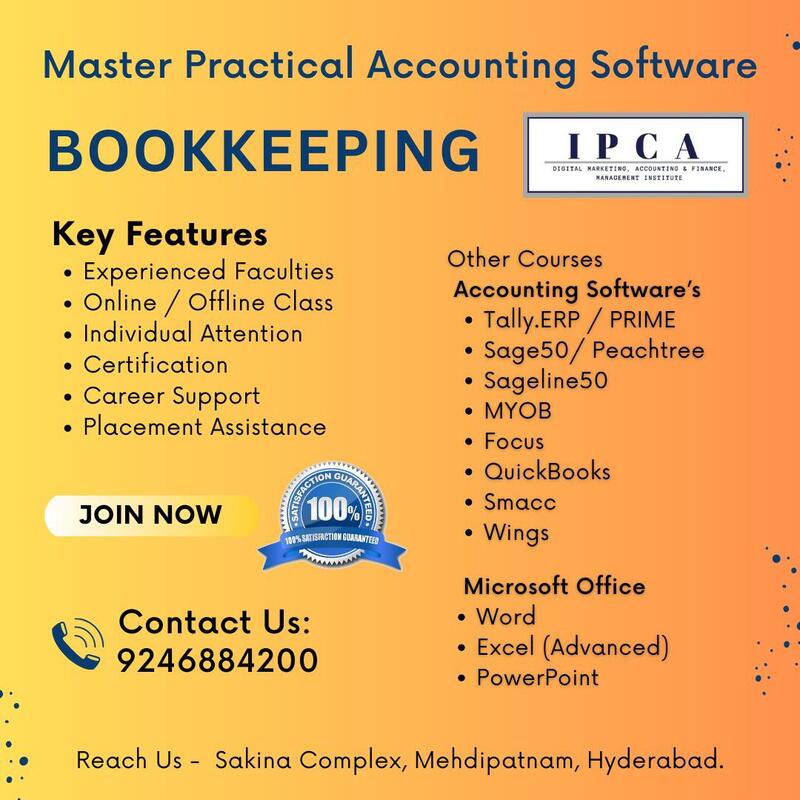 message ipca about this ad Master Peachtree Accounting Software (Now Sage 50) at IPCA Accounting Institute Practical Training | Expert Faculty | Flexible Modes | Affordable Fee | Personal Attention Looking to enhance your accounting skills? Join IPCA'sPeachtree (Sage 50)training program and learn how to: Set up a company Manage day-to-day transactions Handle ledgers & accounts Generate professional financial reports Our training blendscore accounting conceptswithreal-time software application, guided by experienced professionals. Classroom & Online Training Available Call: 9246884200 | Visit:IPCA Website : www.ipcainstitute.com IPCA Accounting Institute, 206-Sakina Complex, Mehdipatnam, Hyderabad. TS |