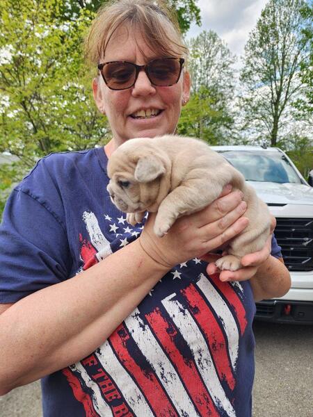message jojo1 about this ad AKC Registered Cryptic Blue Fawn Merle Male This handsome French Bulldog male is a cryptic (ghost) Merle, meaning he carries the Merle pattern with a subtle, shadowed lookabsolutely stunning and unique! Well-built, compact structure Healthy, well-socialized temperament Current on vaccinations and worming AKC Registerable If youre interested in adding this beautiful boy to your home, please call or text Jody at 765-939-1103 (Text preferred for quicker response Full registration 1K extra |