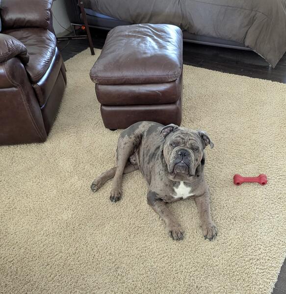 message kokdogman about this ad Have an olde English bulldogge. Blue Merle. Looking for a good home. Asking 500 but negotiable to the right home. He is not altered. He is roughly 80 pounds. Serious inquiries only. He is great with kids and other dogs, crate and house trained never been bred 2 years old 240-468-5004 |