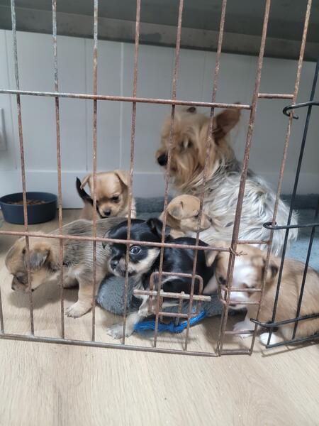 message chorkiepuppieshq about this ad We have a rare all-female litter of 5 beautiful Chorkie puppies (Chihuahua x Yorkshire Terrier mix) ready to reserve! These pups are perfect for loving homes looking for small-breed companions with personality, beauty, and charm. About the Puppies: 5 females a rare find and highly sought after 4 in various shades of brown with soft, mixed tones 1 striking black pup with brown and white accents All puppies are multi-colored, playful, affectionate, and full of personality Currently 5 weeks old, eating well and beginning potty training Raised in a family home, around children and everyday activity Why These Pups Are Special: All-female litter very uncommon and in high demand Home-raised for great temperaments and early socialization Chorkies are intelligent, loving, and make wonderful indoor pets Ideal for families, couples, or individuals in any living space Rehoming Fee: $850 each serious, loving homes only. A non-refundable deposit will hold the puppy of your choice. These girls are in high demand and wont be available long. Message today to reserve your new best friend before they're all spoken for! message chorkiepuppieshq about this ad |