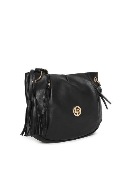 message rohinee about this ad Product Code: 8096085 Black solid sling bag with tasselled detail, has a zip closure 1 main compartment, 2 external and 2 inner pockets Tablet sleeve: No Non-detachable sling strap Height: 22 cm Width: 28 cm Depth: 5 cm This chic Lino Perros handbag will make you stand out from the crowd. Team this black piece with trim denims, leather boots, and a classic leather jacket for an edgy concert look. Synthetic Leather Wipe with a clean, dry cloth to remove dust httpsmyntr.it/T4motMk |