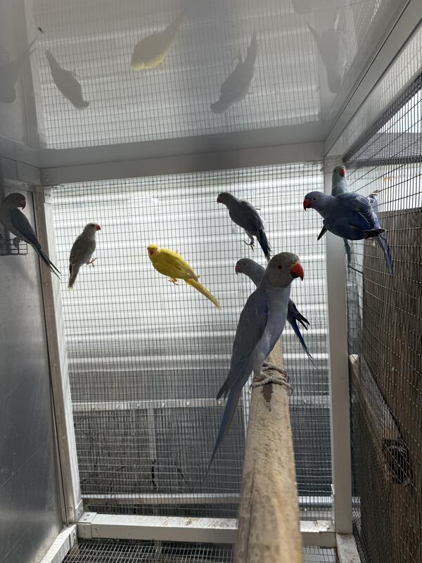 Indian ringneck diferent color Violet, yellow lacewing , blue and turquoise violet call or txe 239 240-2384