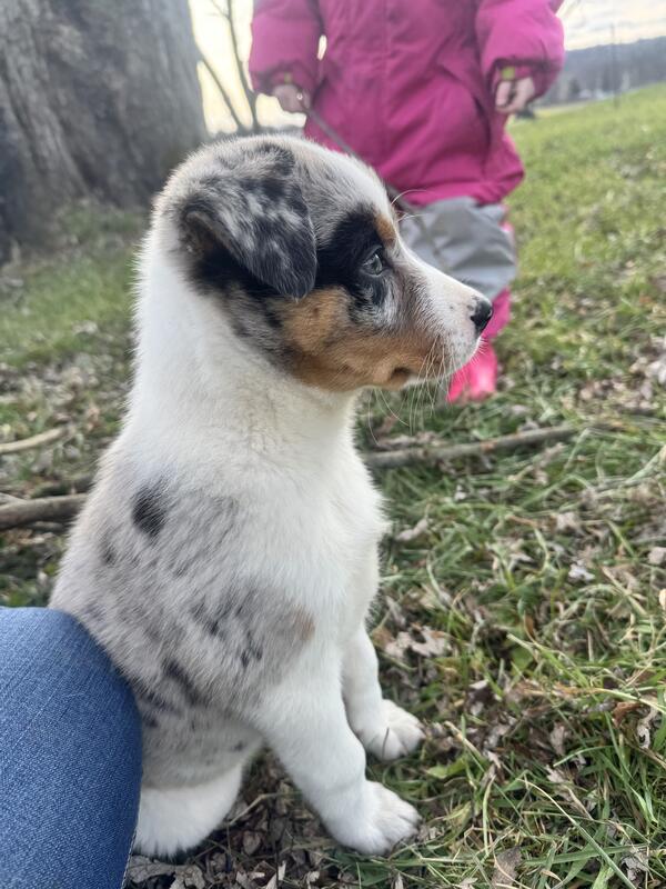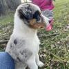 message kddsh0444 about this ad Last pup from our litter , blue Merle female. Mom is purebred Australian Shepherd Dad is Blue Heeler. UTD on shots and deworming. Raised around goats and horses and children. Started on commands and crate training. |