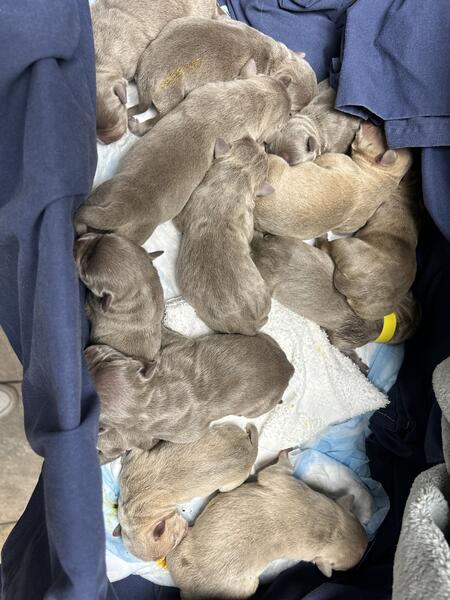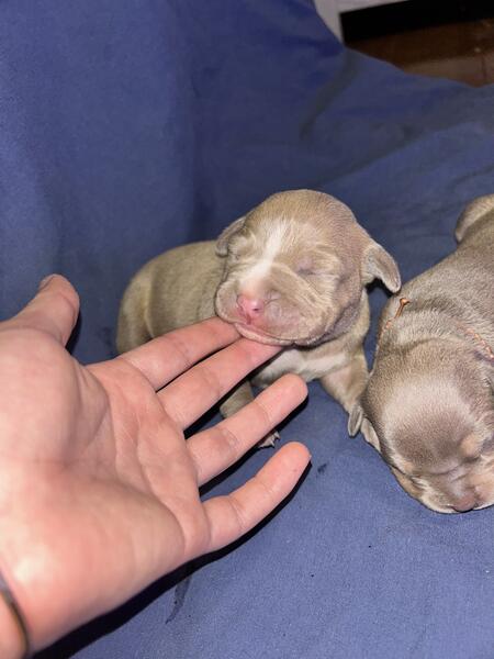 message yamille1202 about this ad 11 puppies born on june 25, 4 males 7 females 2 fawn males, 1 lilac Tri male, 1 lilac male, 2 lilac Tri females, 5 lilac females. Red and blue nose. They will be ready to go first week of September. Females 2000 males 1800. Parents have great temper, docile, great with kids and other animals. |