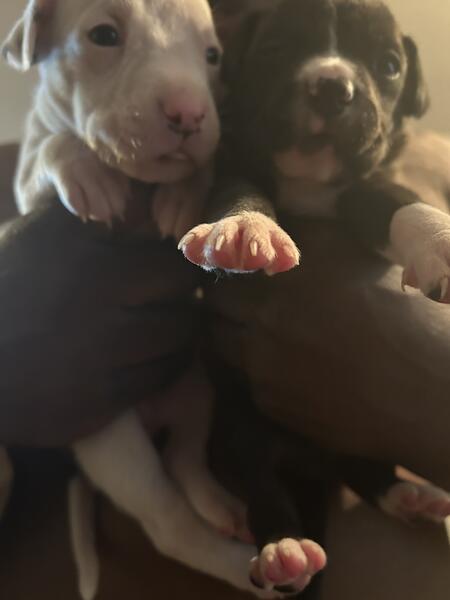I have 8 boys and 1 girl. The dad is 100 percent pitbull and the mom is a pitbull boxer mix
