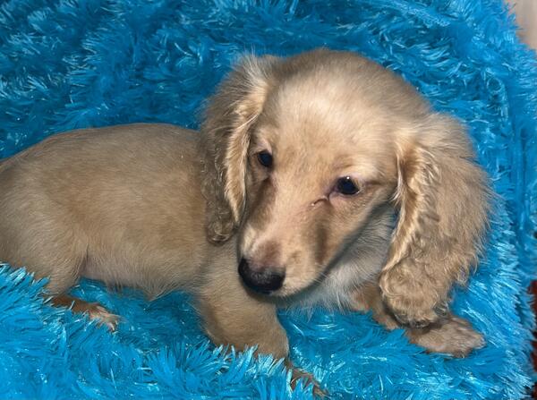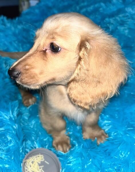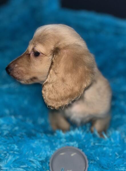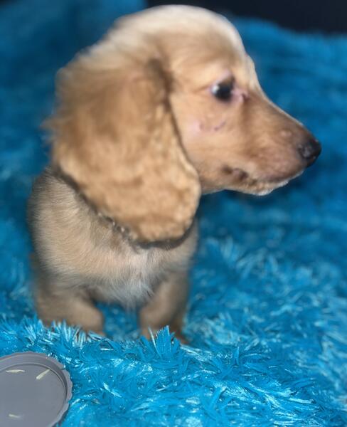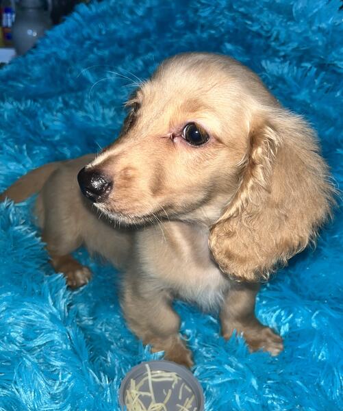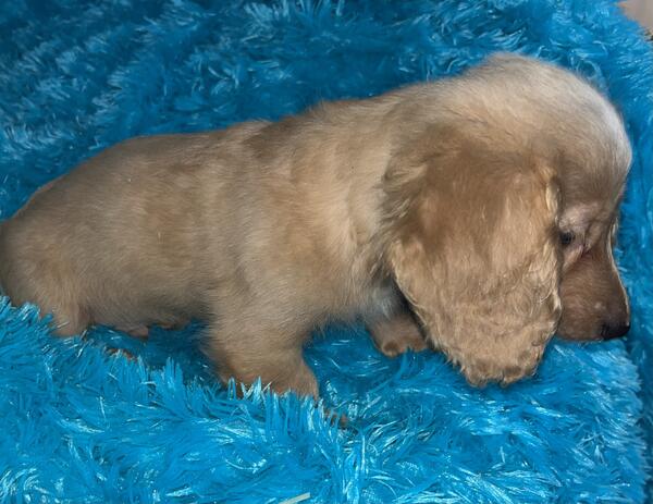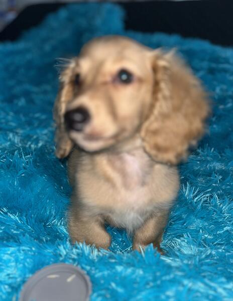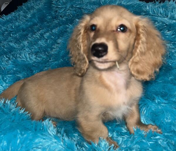 message jnnth7394 about this ad Male Longhaired Miniature Dachshund. Ready for adoption. Veterinarian checked, first round of shots, fully wormed, socialized around dogs, raised in our home. We take pride in raising healthy, happy dachshund puppies. Our puppies are raised on our Century Farm in a home environment. No matter what you wish to call them, dachshund, doxie, wiener dog, hot dogs, low rider, or even carpet shark a dachshund becomes a member of your family once you show it the love and care it deserves. A dachshund puppy will quickly win your heart and make you Happy forever. Our adult dachshunds are from 9 pounds to 12 pounds. However, we can not guarantee what your puppys adult size will be. A deposit is required to hold your puppy. |